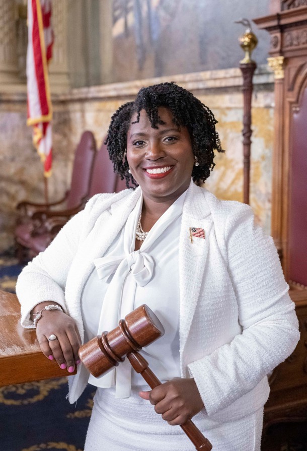Joanna McClinton is the first woman to serve as speaker of the state House of Representatives, where she presided over passage of the CROWN Act, a historic measure banning hair discrimination, and Pennsylvania’s Working Pennsylvanian Tax Credit. Previously, she was the first woman to chair the Democratic Caucus and to serve as Democratic Leader. A lifelong Philadelphian, she began her career as a public defender and chief counsel to Sen. Anthony Hardy Williams and is an ordained minister at a West Philadelphia church.